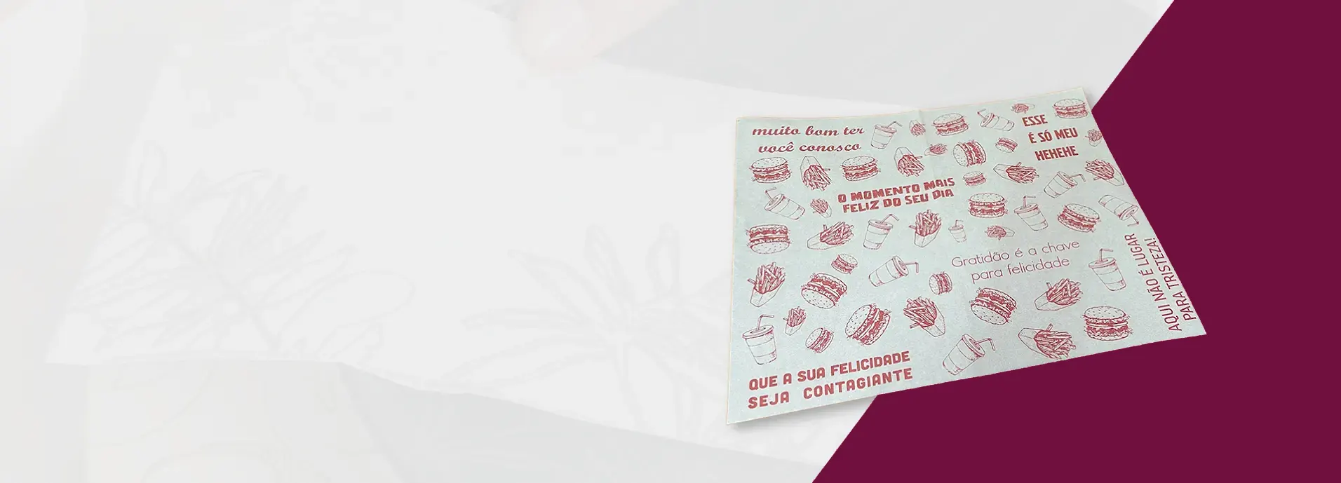 Também trabalhamos com papel antigordura (sem impressão), e a vantagem é que, nesse caso, a produção é mais rápida e o valor é mais acessível.